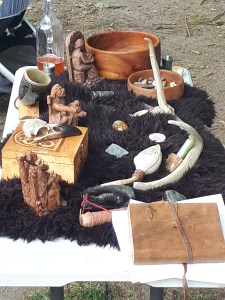 The day started with our opening ritual lead by Dave and Garland. Now, because I do most of my work as a solo practitioner these days this is my favourite part of VanPPD. The energy we bring together when we work as a collective is … well just yummy. I did not attend any of the workshops this year, as I was busy in my booth. I did manage to attend the Heathen Ritual, hosted by Kith and Kin, the ruin I was gifted in the ritual was “Jera” (the alter photos were taken with permission.) Unfortunately I didn’t get around to many of the vendors and was only able to chat with one reader. Leaving my booth at all was only possible because of my dear friends who not only tended my booth but sold a bunch of soap in while I ran around with my little mic. Thanks my loves !!