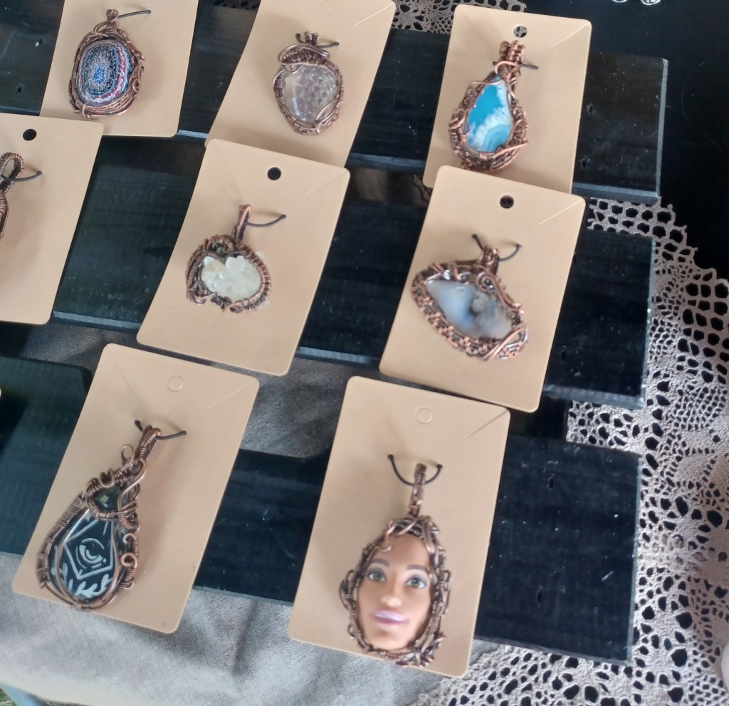 What caught my eye in Morgan’s booth were these beautiful oranges that had been made into wind chimes and earings. They looked so happy and yummy at the same time.